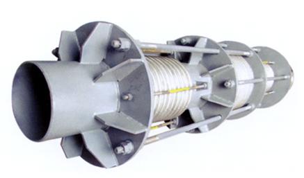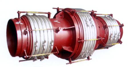 腰鼓式直管壓力平衡波紋膨脹節的兩端各有一個工作波紋管,中間有一個平衡波紋管,膨脹節通過受力構件(大拉桿或舌管)來承受內壓推力。因此管系只需中間固定支架。此類膨脹節只能吸收軸向位移。